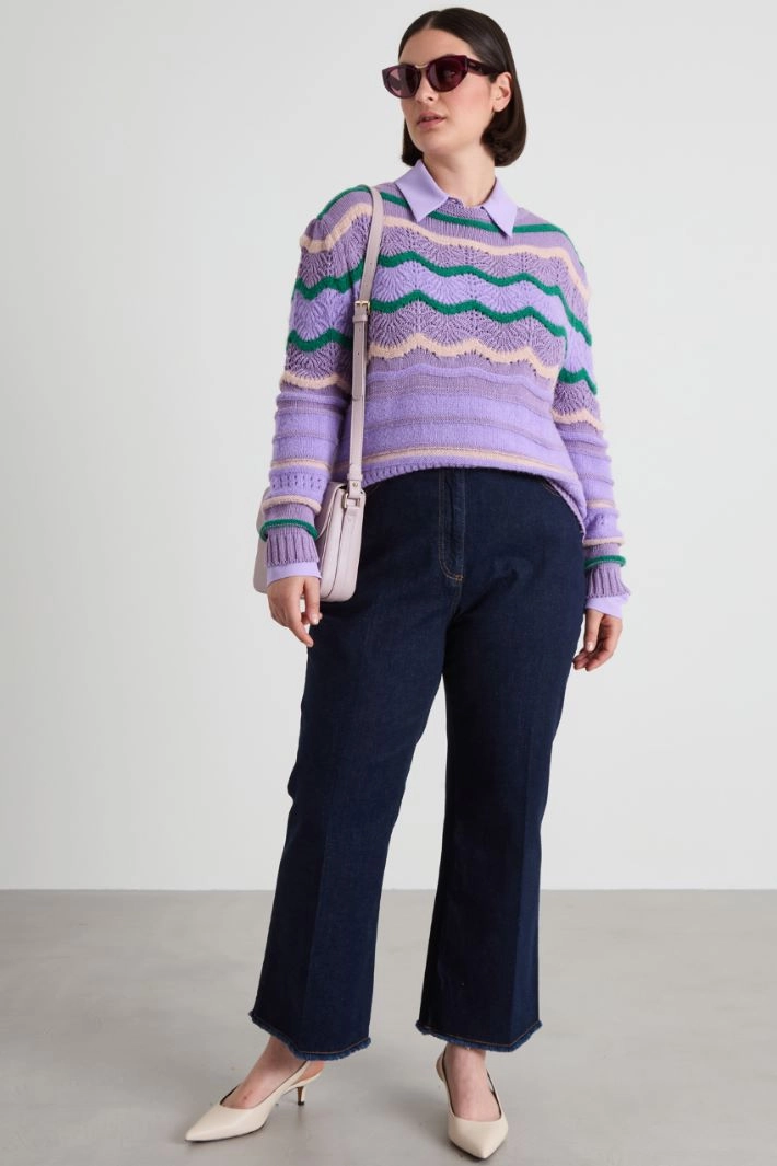 Straight-cut sweater in blend of cotton, viscose and wool, with a boat neckline and long sleeves.
