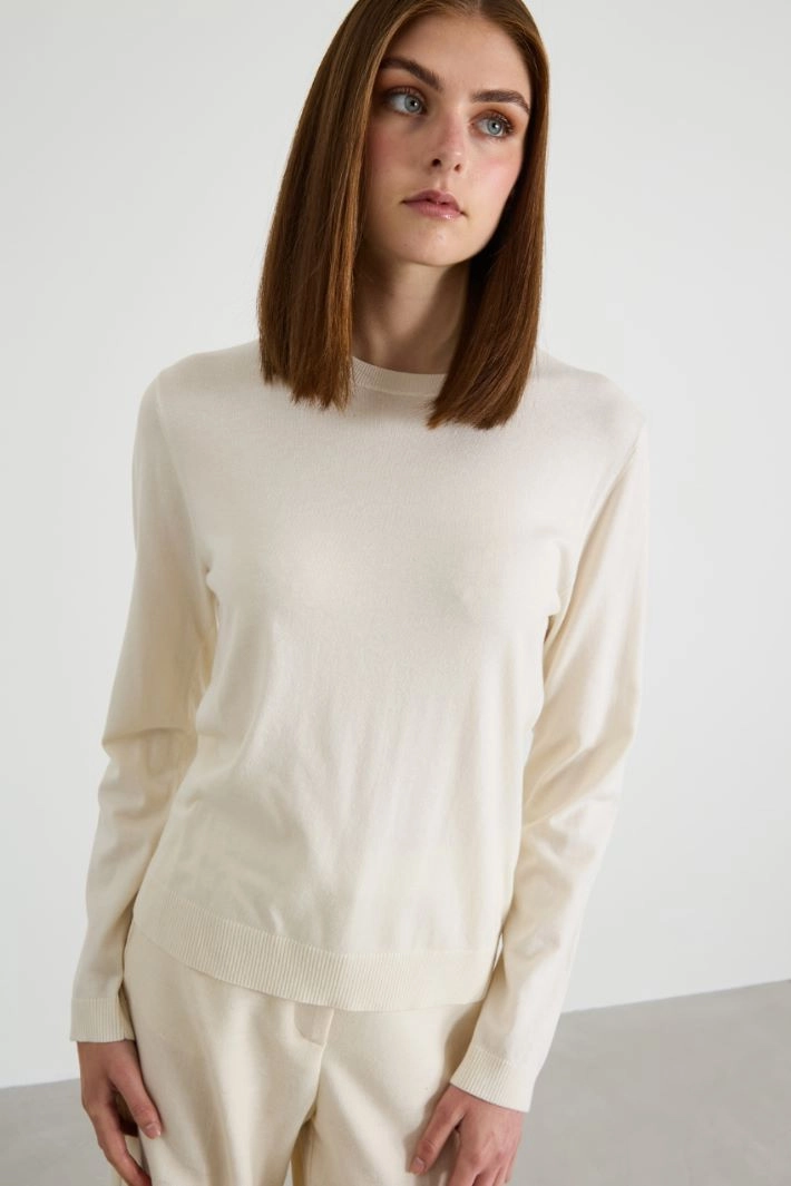 Regular-fit sweater in stretch silk and wool blend yarn, with a crew neck, long sleeves and ribbed trim.