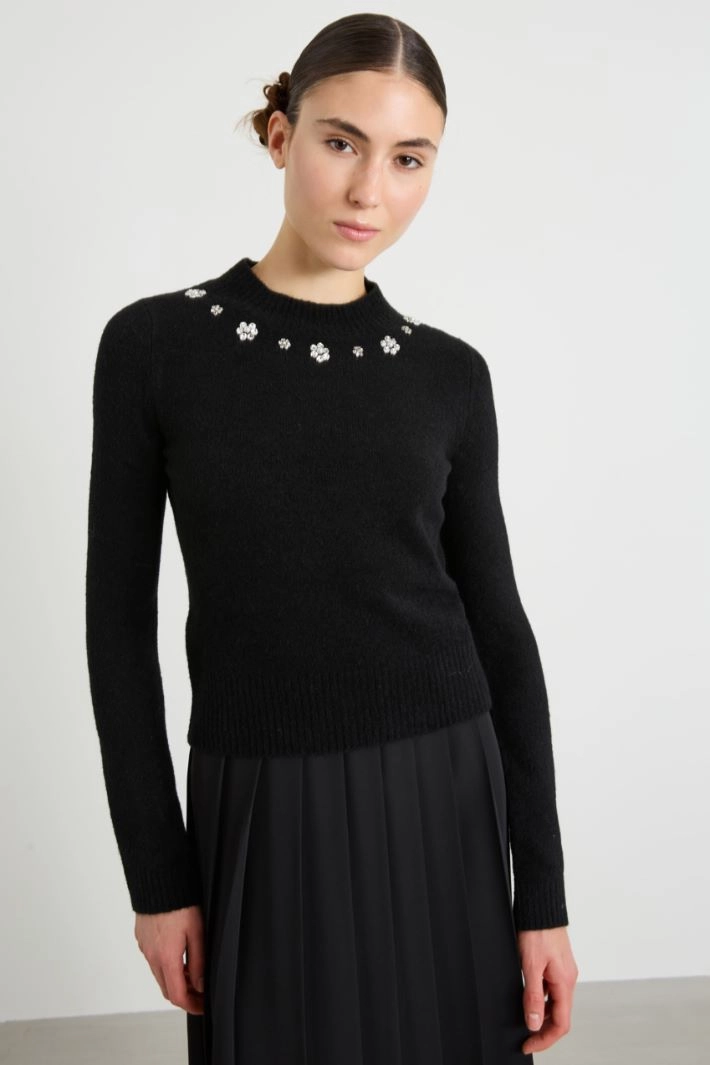 Sweater with rhinestones and pearls