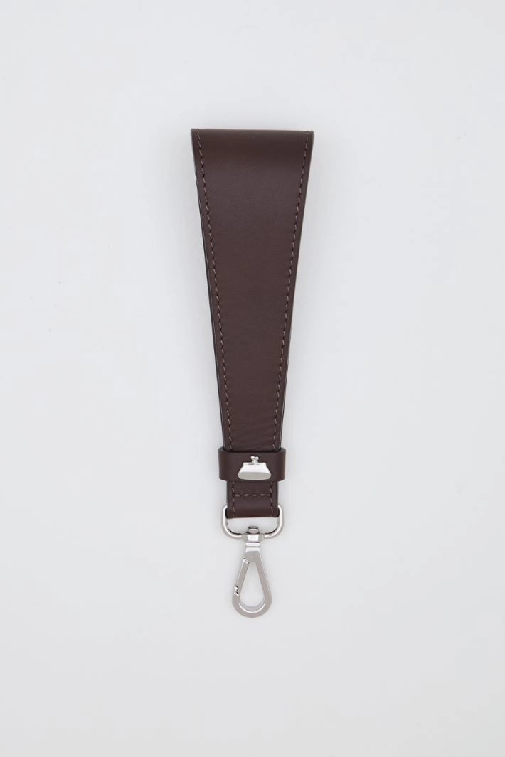 Wrist strap in genuine leather with a smooth finish. Equipped with a small snap hook.