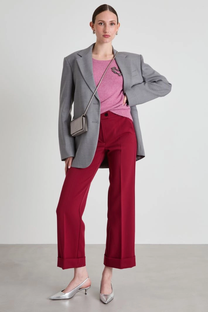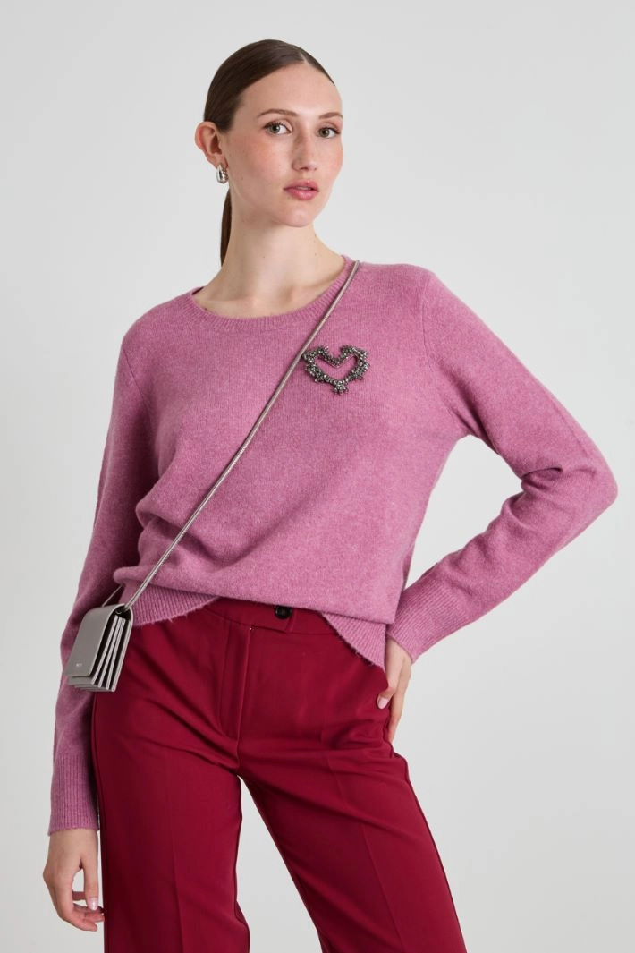 Regular-fit sweater in wool blend yarn, with rhinestone embroidery on the front, crew neck and long sleeves.